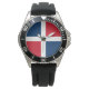 This design features the flag of the Dominican Republic (in Spanish, República Dominicana), which is a country located on the island of Hispaniola in the Greater Antilles archipelago of the Caribbean region. The Dominican Republic occupies the eastern five-eighths of the island, which it shares with Haiti. The official language of the country is Spanish. The capital and largest city of the Dominican Republic is Santo Domingo. The flag of the Dominican Republic is red, white and blue: the blue stands for liberty, the white for salvation and the red for the blood of heroes. In the center of the flag is the coat of arms of the Dominican Republic, which includes the motto "Dios, Patria, Libertad" ("God, Homeland, Freedom").