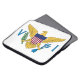 This design features the flag of the United States Virgin Islands, which are a group of Caribbean islands and an unincorporated and organized territory of the United States. The islands are geographically part of the Virgin Islands archipelago and are located in the Leeward Islands of the Lesser Antilles to the east of Puerto Rico and west of the British Virgin Islands. The territory consists of three main islands: St. Thomas, St. John, and St. Croix, as well as several dozen smaller islands. The capital and largest city of the U.S. Virgin Islands is Charlotte Amalie, which is located on the island of St. Thomas.