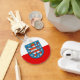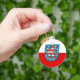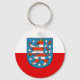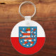 Button Keychain with variant flag of Thuringia; design with two horizontal bands of red and white, and emblem with lion in the centre