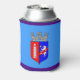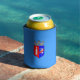 Can Cooler with design with flag of Tirana, capital city of Albania, blue flag with coat of arms