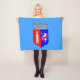 Blanket with design with flag of Tirana, capital city of Albania, blue flag with coat of arms