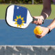Pickleball Paddle with a design with the flag of Topeka, Kansas. A blue and white flag with a yellow star symbol