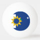 Ping Pong Ball with a design with the flag of Topeka, Kansas. A blue and white flag with a yellow star symbol