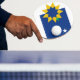 Ping Pong Paddle with  a design with the flag of Topeka, Kansas. A blue and white flag with a yellow star symbol
