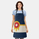 Apron with a design with the flag of Tulsa, Oklahoma. A beige and navy blue flag with a gold Osage shield containing a red circle and a beige six-pointed star