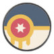 Hockey Puck with a design with the flag of Tulsa, Oklahoma. A beige and navy blue flag with a gold Osage shield containing a red circle and a beige six-pointed star
