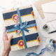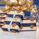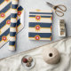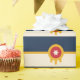 Wrapping Paper with a design with the flag of Tulsa, Oklahoma. A beige and navy blue flag with a gold Osage shield containing a red circle and a beige six-pointed star