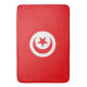 Flag of Tunisia: Mostly red, it has in its middle a white disk with a red crescent that surrounds a five-pointed star.