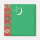 The flag of Turkmenistan (Russian: Флаг Туркмении,Turkmen: Türkmenistanyň baýdagy) was adopted on January 24, 2001. It features a green field with a vertical red stripe near the hoist side, containing five carpet guls (designs used in producing rugs) stacked above two crossed olive branches similar to those on the flag of the United Nations; a white waxing crescent moon, typical of Turkic symbology, and five white five-pointed stars appear in the upper corner of the field just to the fly side of the red stripe.