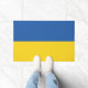 The flag of Ukraine is a banner of two equally sized horizontal bands of blue and yellow. The top represents sky and the yellow represents wheat.