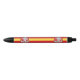 Pen with design with flag of Vilnius, capital city of Lithuania; red flag with yellow stripe and coats of arms with two golden lions holding a shield in the centre