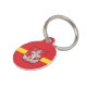 Pet Tag with design with flag of Vilnius, capital city of Lithuania; red flag with yellow stripe and coats of arms with two golden lions holding a shield in the centre