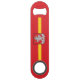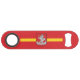 Bottle Opener with design with flag of Vilnius, capital city of Lithuania; red flag with yellow stripe and coats of arms with two golden lions holding a shield in the centre