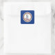 The flag of the Commonwealth of Virginia consists of the seal of Virginia against a blue background. The current version of the flag was adopted at the beginning of the American Civil War in 1861. The flag may be decorated with a white fringe along the fly. The Latin motto, "Sic semper tyrannis," at the bottom of the state seal means "Thus Always to Tyrants." This quote is attributed to Brutus during the assassination of Julius Caesar in Rome. The woman is "Virtus the genius of the Commonwealth, dressed as an Amazon" (Code of Virginia § 1-500) and represents Virginia. The prostrate man represents tyranny; note the fallen crown to the right. The tyrant is holding both a chain and a scourge.