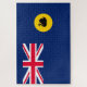 This design features the flag of Western Australia, which is a state occupying the western portion of Australia, excluding the country's external territories. The state of Western Australia is bounded by the Indian Ocean to the north and west and the Southern Ocean to the south; it borders the state of South Australia to the south-east and the Northern Territory to the north-east. Western Australia is Australia's largest state. Most of the population lives in the area around Perth, which is the state's capital and largest city, leaving the rest of the state sparsely populated.