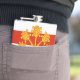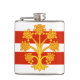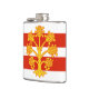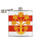 Vinyl wrapped flask with design with a flag of historic county of Westmorland, in England, Great Britain; white and red striped flag with golden heraldic apple tree in the centre