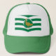 Hat with design with a flag of historic county of Wiltshire, in England, Great Britain; white and green flag with angled stripes and great bustard in the centre