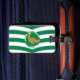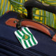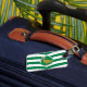 Luggage Tag with design with a flag of historic county of Wiltshire, in England, Great Britain; white and green flag with angled stripes and great bustard in the centre