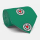 Tie with flag of city of Worcester, Massachusetts; green flag with white emblem with red heart in the center