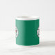 Mug with flag of city of Worcester, Massachusetts; green flag with white emblem with red heart in the centre