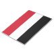 This design features the national flag of Yemen (officially known as the Republic of Yemen), which is a country at the southern end of the Arabian Peninsula in Western Asia. Yemen is bordered by Saudi Arabia to the north, the Red Sea to the west, the Gulf of Aden and Guardafui Channel to the south and Oman to the east. Moreover, Yemen's territory encompasses more than 200 islands, including the Socotra islands in the Guardafui Channel. Yemen's capital city in law is Sanaa, but the port city of Aden is currently the temporary capital. Other major cities in Yemen are Taiz, Al Hudaydah, Ibb, Mukalla, Dhamar, 'Amran, Bajil and Sadah.