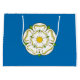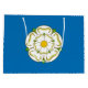 This design features the flag of the historic county of Yorkshire in the north of England. Within the borders of the historic county of Yorkshire are vast stretches of unspoiled countryside such as can be found in the Yorkshire Dales or the North York Moors. Yorkshire has been nicknamed "God's Own County". The emblem of Yorkshire is the White Rose of the English royal House of York; the flag of Yorkshire features that rose on a blue background.
