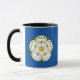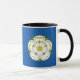 Mug with design with a flag of historic county of Yorkshire, in England, Great Britain; flag with a white rose on a blue field