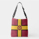 Bag with design with a flag of historic county of Northamptonshire, in England, Great Britain; maroon flag with a gold cross and the county’s traditional rose in the centre