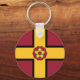 Keychain with design with a flag of historic county of Northamptonshire, in England, Great Britain; maroon flag with a gold cross and the county’s traditional rose in the centre