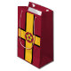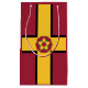 Paper Bag with design with a flag of historic county of Northamptonshire, in England, Great Britain; maroon flag with a gold cross and the county’s traditional rose in the centre