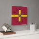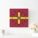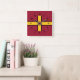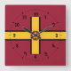 Wall Clock with design with a flag of historic county of Northamptonshire, in England, Great Britain; maroon flag with a gold cross and the county’s traditional rose in the centre