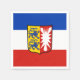 Paper napkin with variant flag of Schleswig-Holstein; design with horizontal tricolor of red, white and blue, and with state’s coat of arms in the centre