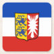 Paper coaster with variant flag of Schleswig-Holstein; design with horizontal tricolor of red, white and blue, and with state’s coat of arms in the centre