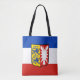 Tote bag with variant flag of Schleswig-Holstein; design with horizontal tricolor of red, white and blue, and with state’s coat of arms in the centre