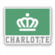 This flag of Charlotte was adopted in 1985. It may be considered a government service flag, since it is flown outside the Government Centre and its central charge appears on government vehicles. It consists of a stylised white crown centred on a green field occupying about the central three-fifths of the flag overall. Its centre forms an “M”. The crown is for unity—all city agencies cooperating for the good of Charlotte’s citizens.