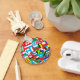 This product displays a multitude of flags of countries from around the world. Not only is it colorful but it reminds us that we all live on this Earth.