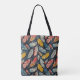Elevate your everyday style with this chic tote bag featuring a striking pattern of bold Art Nouveau feathers. The intricate feather design showcases elegant curves and flowing lines in rich, vibrant tones, set against a deep navy blue background for a dramatic and sophisticated look.