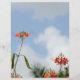Sky blue and white clouds are the overall feel of this design, but a few flowers of the Flamboyant, Royal Poinciana or Flame tree make an appearance with their tropical orange and red colours reaching up from the bottom of this beautiful paper.