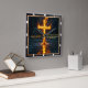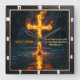 This incredibly moving and symbolic design powerfully conveys the theme of Flame and Water—the spiritual cleansing and empowering baptism of the Holy Spirit. The artwork, featured on a square wall clock, displays a vivid cross made entirely of fire and smoke rising dramatically from dark, deep, rippling water. The bright cross is strongly reflected in the liquid below, emphasizing the divine presence and reality of the message from Matthew 3:11: "He will baptize you with the Holy Spirit and fire." The compelling visual contrast of the powerful fire and the cool water symbolizes purification and the transformative power of faith. The highest quality print and artwork used on the surface is so exceptional it creates a stunningly realistic tactile illusion; you could easily mistake the textures for genuine embossed metal or heavy, worn leather. This piece is a spectacular dedication to faith and the power of the Holy Spirit. this impressive, high-quality piece is a perfect gift for any devoted person, honoring their spiritual journey.