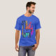 This captivating t-shirt design features a llama outlined in bold black, standing proudly with an aura of vibrant flames. The flames transition through a spectrum of warm colours, including red, orange, pink, and purple, creating a mesmerising effect. The llama itself is filled with a gradient of cool colours, including shades of yellow, green, and blue, providing a striking contrast to the fiery backdrop. The playful, wavy lines of the flames add a dynamic and energetic feel to the design, making it an eye-catching piece perfect for those who love unique and colourful fashion statements.