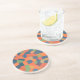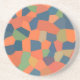 An eye-catching sandstone Coaster or Drinks Mat, with an abstract pattern in vibrant colours - Flaming Orange, Midnight Blue and Deep Green, from a digital design by Judy Adamson.