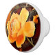 A stylised depiction of a yellow-orange rose on a dark red and orange background.