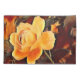 A stylised depiction of a yellow-orange rose on a dark red and orange background. Add your own text.