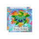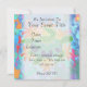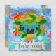 Custom two-sided invitation cards. Front has customisable "You're Invited". Back has invitation information--enter your event title, date, time, location, and a personal message. A digitally painted green sea turtle with a patterned shell against a background of orange kelp like flames.