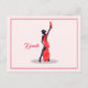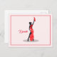 Flamenco Dancer distressed design in red and black. She's holding a fan and standing on a platform.