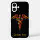 Double snake caduceus. Icon created with flame elements. Custom background color. Custom text.