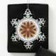 Fun digital kaleidoscope image created from one of my original photos of flames. The flames are used to create a sun shaped prism of rays with various shades of black, brown and orange.
