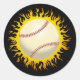 Flaming Baseball Classic Round Sticker