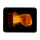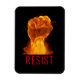 Social justice themed magnet features large fist of fire and flames with customisable "RESIST" text in red modern font on black background.