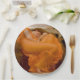 This design features a painting by the British artist Sir Frederic Leighton (1830–1896), who was famous for his works depicting historical, biblical, and classical scenes in an academic style. This painting shows a stunningly beautiful woman wearing a diaphanous red dress as she is curled up asleep. Some art historians have said that the toxic oleander branch in the top right could symbolise the fragile link between sleep and death. The rich colours and the elegantly recreated marble surround are characteristic of Leighton's realistic style, as is his lifelike use of natural light. This painting is widely considered to be Leighton's magnum opus and it was completed in 1895; it is currently housed in the Museo de Arte de Ponce, Puerto Rico.